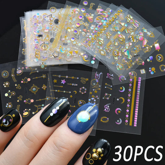 Elf Fairy Nail Art Stickers: Sun Moon Star Geometric Set