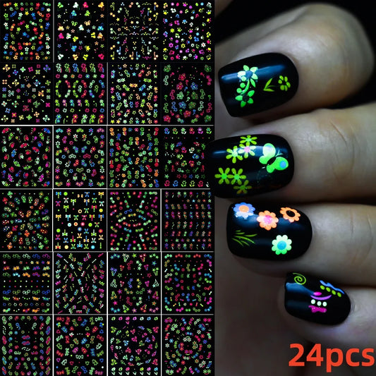 Neon 3D Floral Nail Stickers Set - 24/30pcs