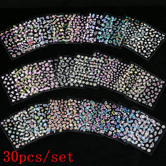 30pcs 3D Floral Nail Stickers: Daisy, Butterfly, Heart
