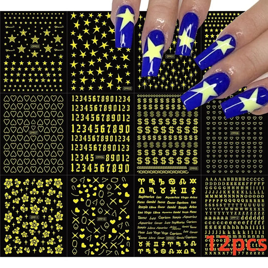 3D Metallic Star Nail Stickers Gold/Silver Y2K Manicure