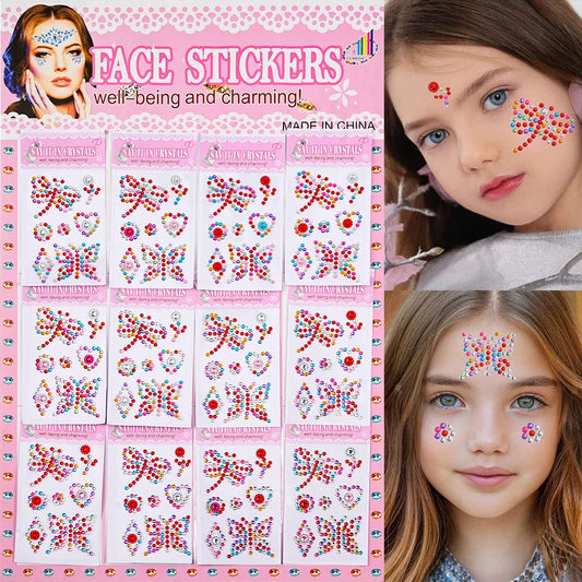 3D Rhinestone Face Stickers - 12Pcs Temporary Tattoos