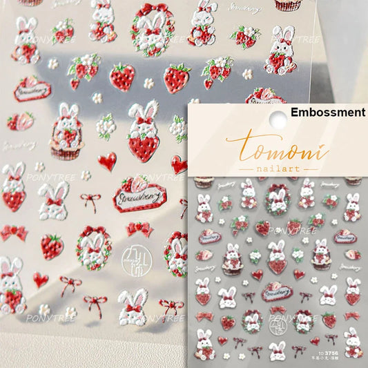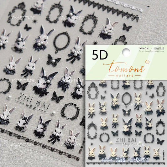 Bunny Floral Wreath 5D Nail Art Stickers Decals