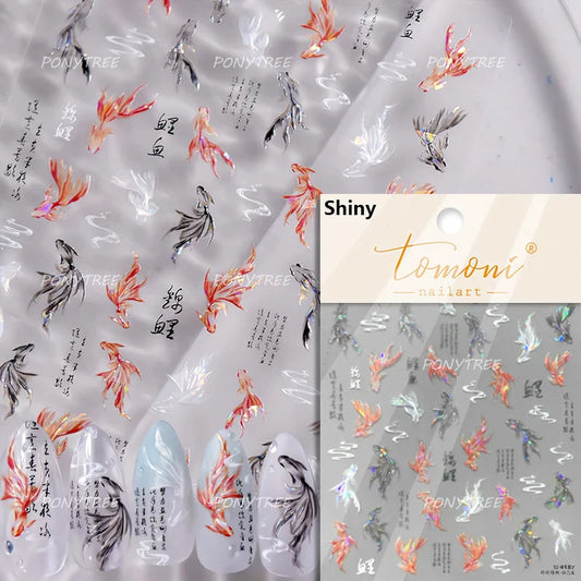 Goldfish Lotus Pond Nail Art Stickers Decals