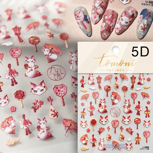 Red Equinox Flower Fox Mask Nail Art Stickers