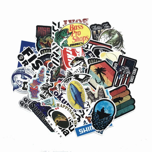 Outdoor Fishing Stickers Pack for Laptop, Skateboard, Luggage, Car, Bike Decals