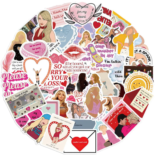 10/50PCS Hot Singer Sabrina Carpenter Stickers Superstar Concerts Decals For Phone Laptop Luggage Guitar Pink Aesthetic Stickers
