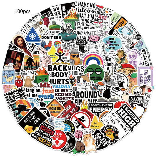 100pcs Snarky Meme Vinyl Stickers Funny Doodle Art For Laptops Skateboards Luggage Reusable Vinyl Decals For Diy Gifts