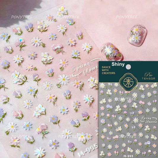 Floral Nail Art Stickers: Roses, Tulips, Daisies, Pearls