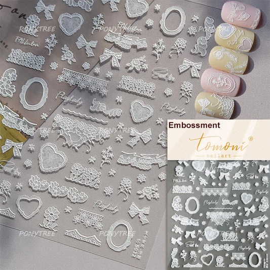 Romantic Bowknot Lace Nail Art Stickers Decals