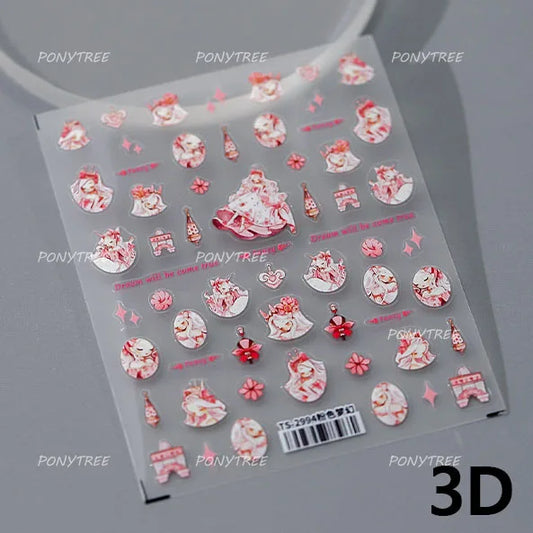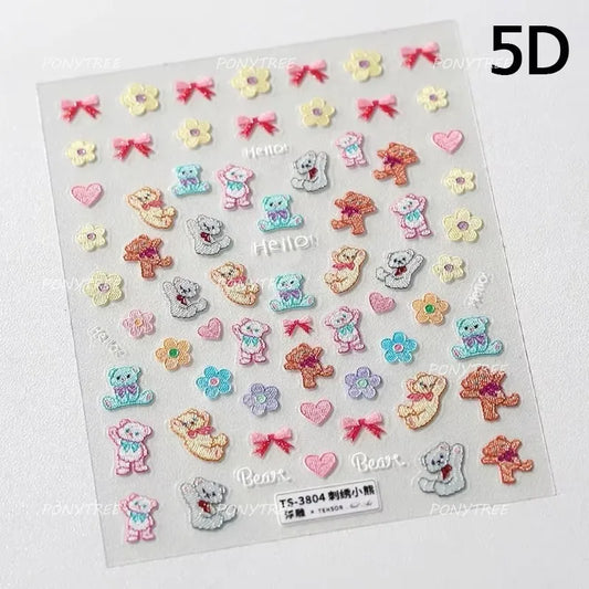 Bear Cake Heart Nail Art Stickers 5D Manicure Decals