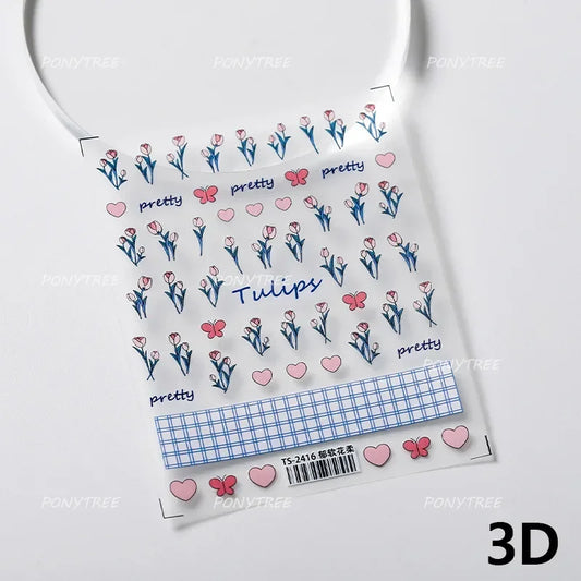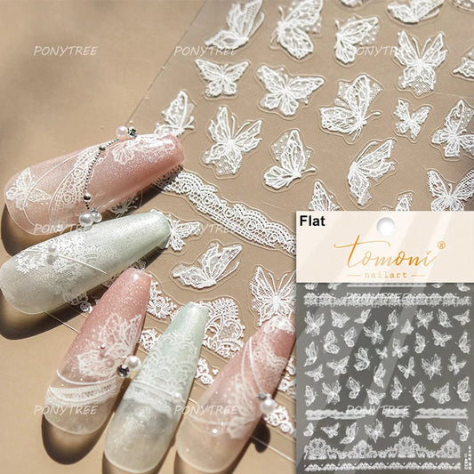 Lace Bowknot Tulip Butterfly Nail Art Stickers