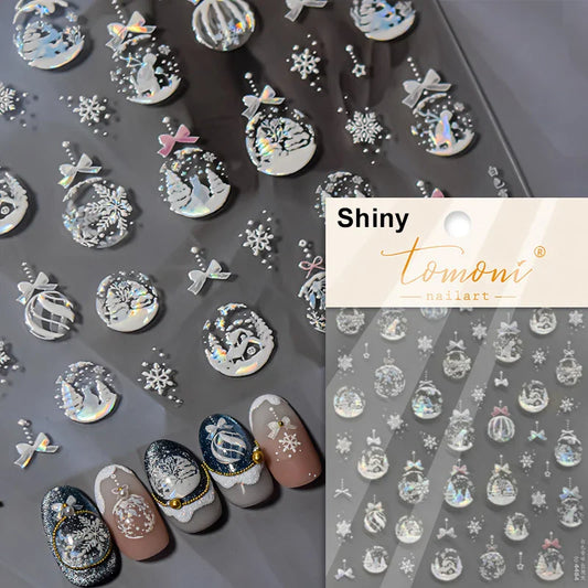 5D Christmas Snowflake Nail Art Stickers 3D Embossed Decals