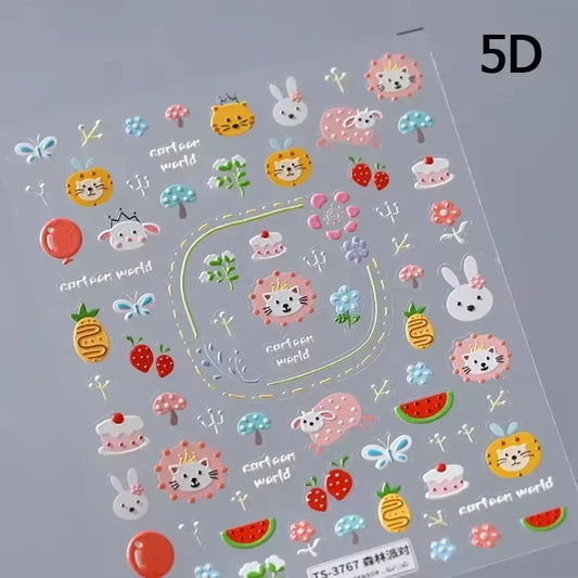 Cat Rabbit Flower Nail Art Stickers Manicure Decals