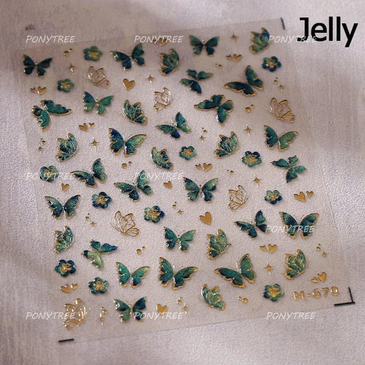 Golden Rhinestone Butterfly Flower 3D Nail Art Stickers