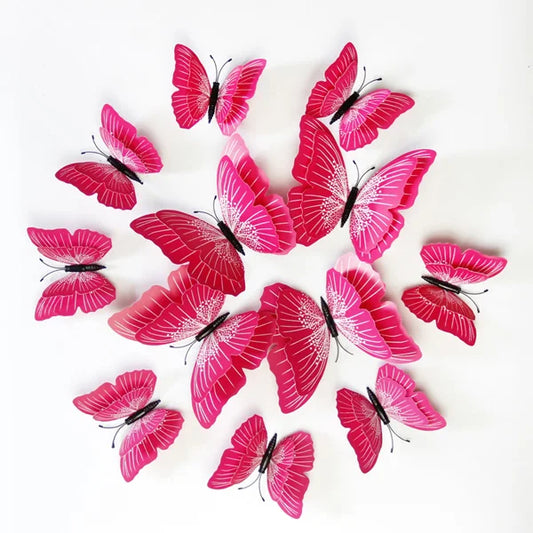 12pcs 3D Butterfly Wall Stickers - Double Layer, Solid Colors, Magnetic Decor