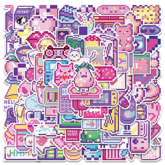 95PCS Cute Pink Pixel Cartoon Stickers Waterproof DIY Luggage Laptop Decals