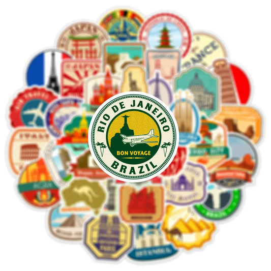 10/25/50pcs Retro World Travel Landmark Suitcase Stamps Sticker Packs