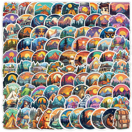 10/30/50/100pcs Mountain Camping Sunrise and Sunset Peaceful Sticker Packs