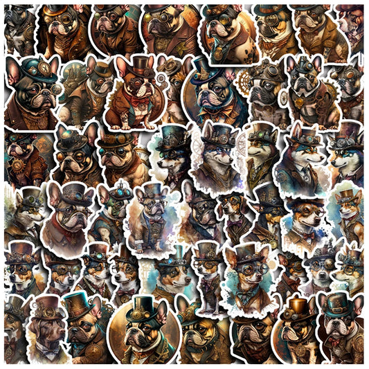 10/30/50pcs Vintage Steampunk Dog Sticker Packs