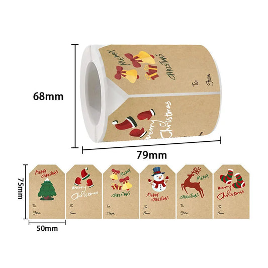 150Pcs/Roll Christmas Gift Tags Kraft Christmas Labels Christmas Present Tag Stickers Package Labels Wrapping Cards Decor