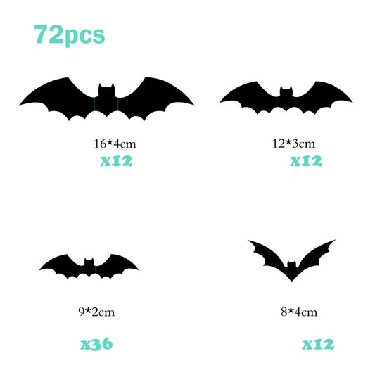 72/48/12Pcs 3D Wall Stickers Bat Stickers Halloween Decoration Vinyl Sticker Bat Sticker for Home Halloween Party Decorations