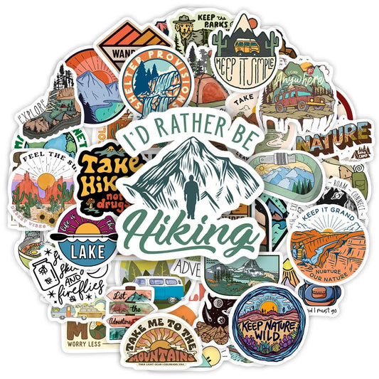 50pcs Forest Camping Hiking Outdoor Stickers Travel Scenery Decals Suitcase Luggage Scrapbook Waterproof Graffiti Sticker Toys
