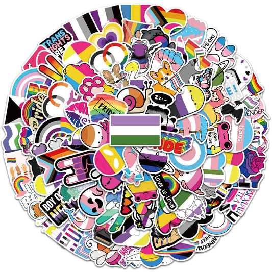 50/100pcs Colorful Cool Cartoon Rainbow LGBTQ Stickers For Laptop Phone Guitar Luggage Diary Waterproof Graffiti Vinyl Decals