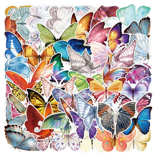 50Pcs Butterfly Stickers for Laptop Skateboard Guitar Stationery Stickers DIY Fridge Car Bottle Decals Kids Toys