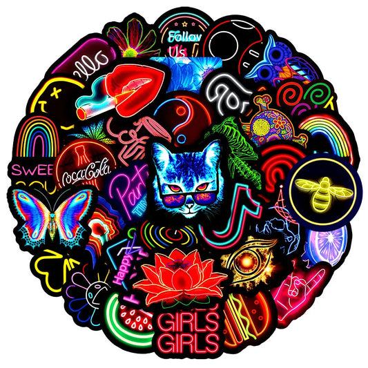 10/30/50PCS Popular Cool Neon Light Sticker Pack Skateboard Guitar Decoration DIY Laptop New Waterproof Graffiti Decal Wholesale