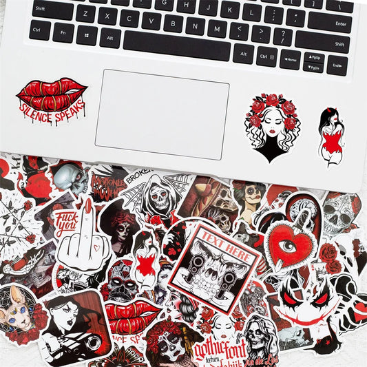 10/30/50PCS Red And Black Gothic Graffiti Waterproof Sticker Creative Trend Decoration Demon Terror Series Decal HelmetWholesale