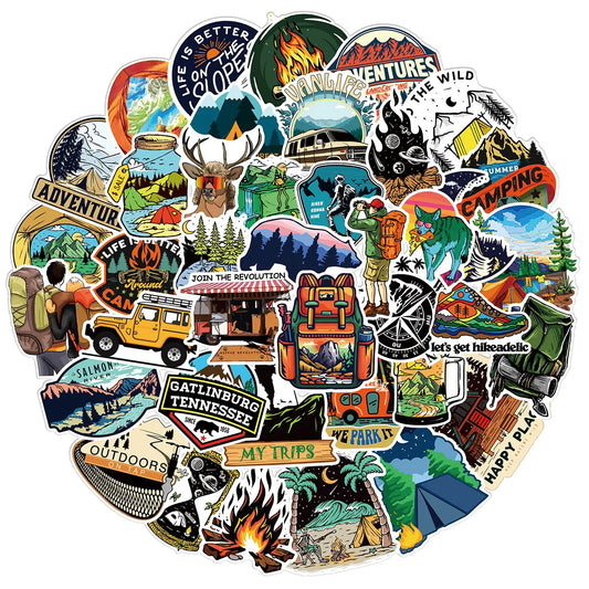 50pcs Travel Hiking Outdoor Surfing Wild Adventure Outside Camping Decal Stickers Pack for Phone Laptop Luggage Bike Car Sticker