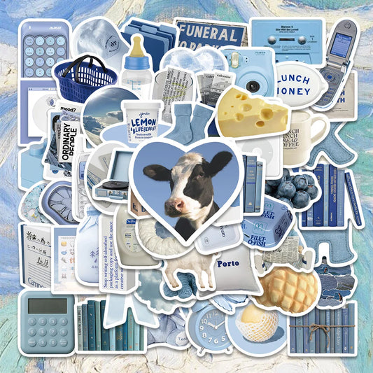 60PCS Blue Stickers for Skateboard, Fridge, Phone, Guitar, Motorcycle, Luggage, Kids Toy Decals