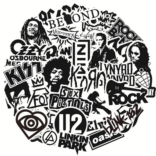 10/30/50Pcs Black and White Rock Band Stickers DIY Waterproof Skateboard Guitar Motorcycle Luggage Graffiti Cool Sticker Kid Toy