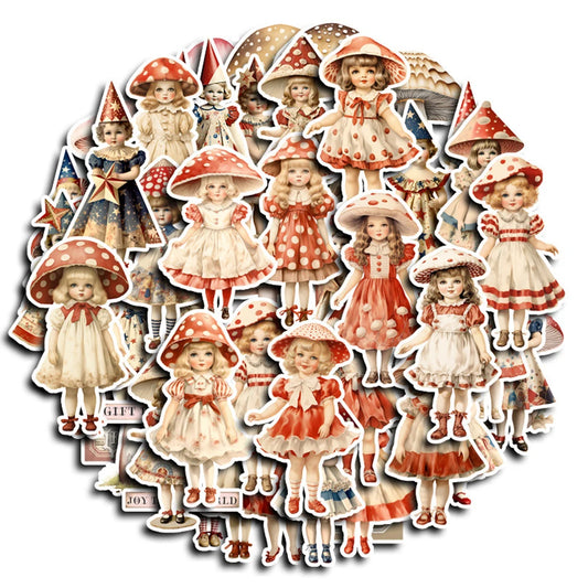 10/30/50pcs Cute Retro Mushroom Head Girl Cartoon Stickers Decals Notebook Laptop Phone Suitcase Stationery Sticker Kids Toys