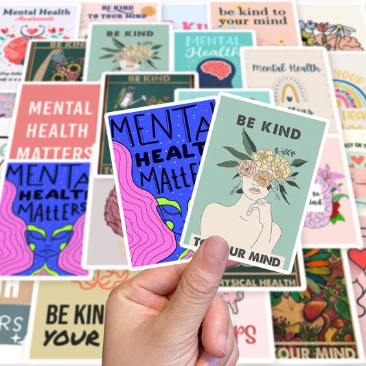 25Pcs Mental Health Awareness Sticker For Phone Cup Bottle Luggage Laptop Fridge Guitar Waterproof Decal Kid Gift Toy Decor