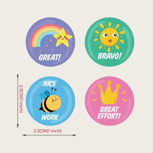 100-500pcs 1inch Good Job Praise Up Cute Stickers Roll Reward Student Label Seal Lable Stationery stickers