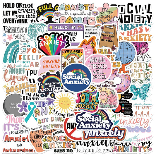 50PCS Social Anxiety Sensory Stickers for Journaling, Skateboard, Phone, Luggage, Fridge, Car, Gift