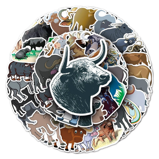 50Pcs Buffalo Cartoon Waterproof Vinyl Stickers for Skateboard Snowboard