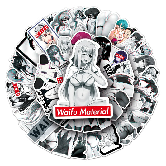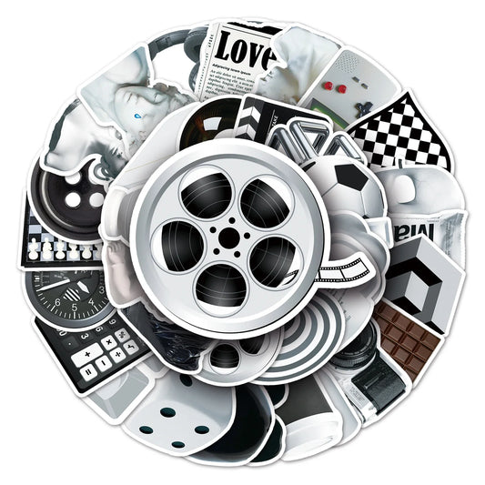 50Pcs Black & White Cartoon Waterproof Vinyl Stickers for Skateboard Snowboard