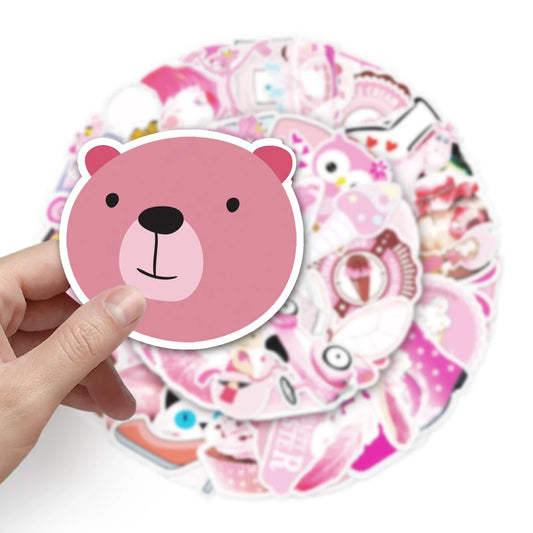 50Pcs Cute Pink Cartoon Waterproof Vinyl Stickers for Skateboard Snowboard
