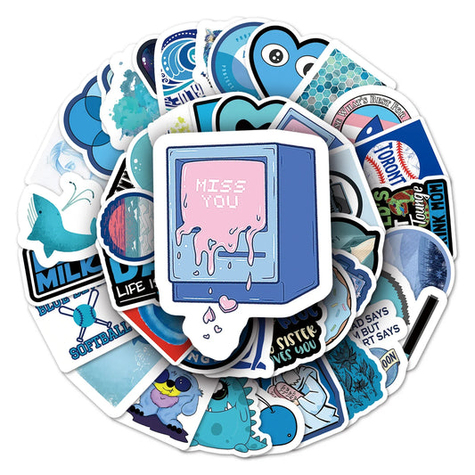 50Pcs Blue Sky Cloud Cartoon Waterproof Vinyl Stickers for Skateboard Snowboard
