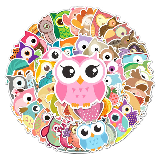 50Pcs Cute Owl Waterproof Stickers for Skateboards and Home Decor