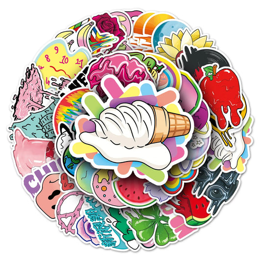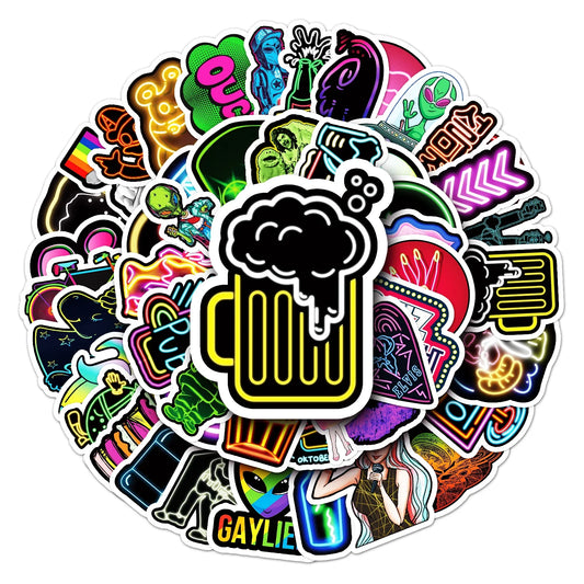 50Pcs Neon Cartoon Waterproof Vinyl Stickers for Skateboard Snowboard