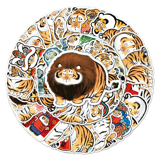 50Pcs Tiger Cartoon Waterproof Vinyl Stickers for Skateboard Snowboard