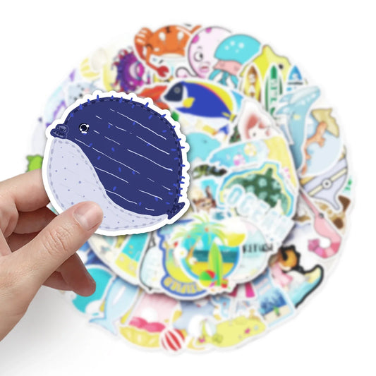 50Pcs Ocean Cartoon Waterproof Vinyl Stickers for Skateboard Snowboard