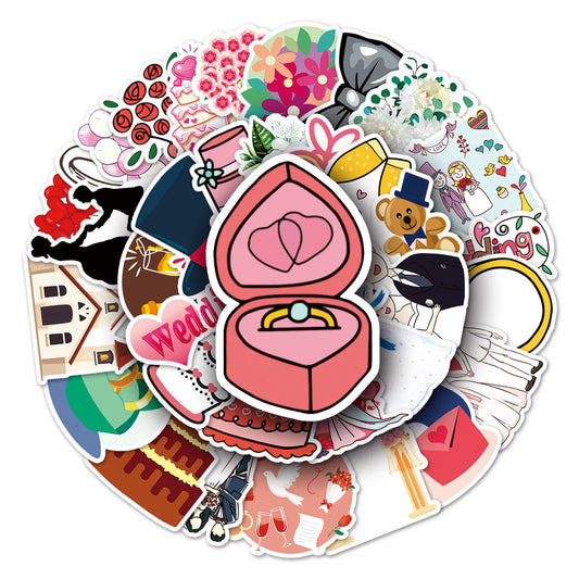 50Pcs Wedding Celebration Cartoon Waterproof Vinyl Stickers