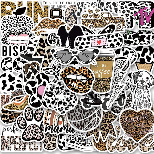 60PCS Leopard Print Vintage Graffiti Cartoon Stickers for Wall, Luggage, Laptop, Car, Phone