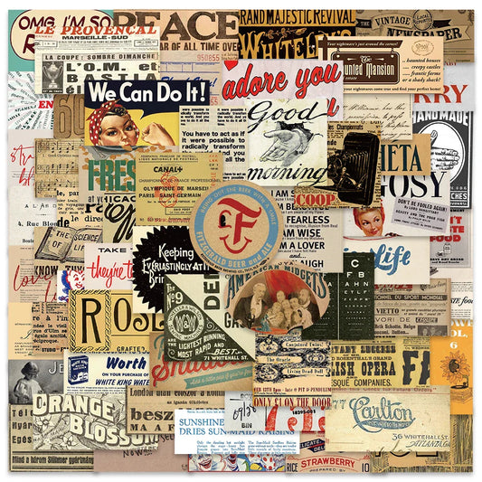 58PCS Vintage Slogan Newspaper Stickers for DIY Scrapbook, Laptop, Phone, Bike