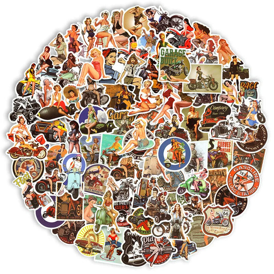 Retro Pin Up Girl Stickers Waterproof Decals for Water Bottle, Laptop, Luggage, Skateboard, Motorcycle (10/50/100pcs)
