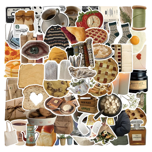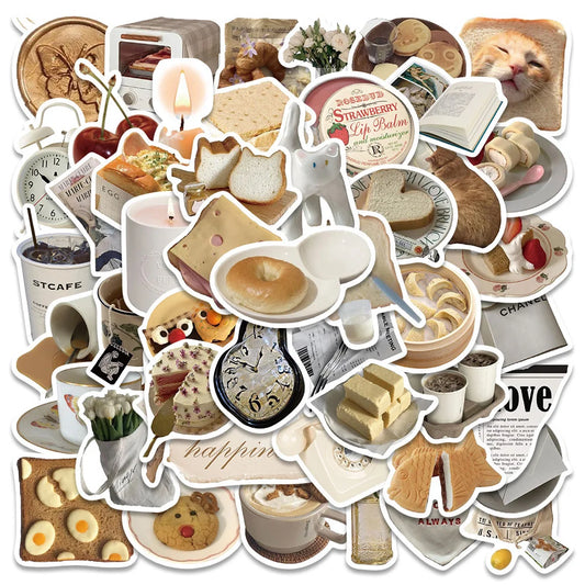 10/30/60PCS Cute Cartoon Stickers Vintage Biscuit Food Graffiti Decals DIY Skateboard Suitcase Phone Notebook Bike Sticker Toys